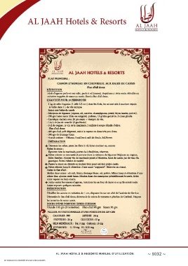 AL JAAH HOTELS & RESORTS MANUEL D'UTILISATION ~ 1032 ~ CET OUVRAGE EST LA PROPRIÉTÉ D'AL JAAH HOTELS & RESORTS