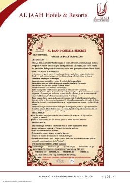 AL JAAH HOTELS & RESORTS MANUEL D'UTILISATION ~ 1061 ~ CET OUVRAGE EST LA PROPRIÉTÉ D'AL JAAH HOTELS & RESORTS