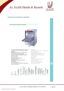 LAVAGE & HYGIENE DE CUISINE AL JAAH HOTELS & RESORTS MANUEL D'UTILISATION ~ 1127 ~ CET OUVRAGE EST LA PROPRIÉTÉ D'AL JAAH HOTELS & RESORTS