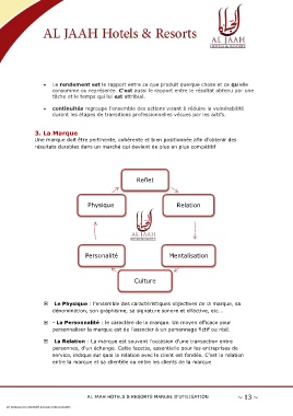 AL JAAH HOTELS & RESORTS MANUEL D'UTILISATION ~ 13 ~