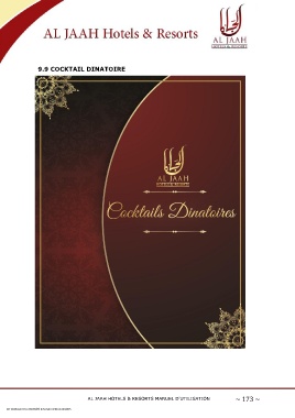 9.9 COCKTAIL DINATOIRE AL JAAH HOTELS & RESORTS MANUEL D'UTILISATION ~ 173 ~ CET OUVRAGE EST LA PROPRIÉTÉ D'AL JAAH HOTELS & RESORTS