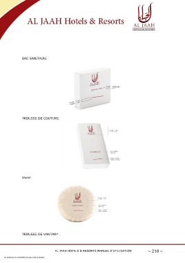 SAC SANITAIRE TROUSSE DE COUTURE savon TROUSSE DE VANTARY AL JAAH HOTELS & RESORTS MANUEL D'UTILISATION ~ 218 ~ CET OUVRAGE EST LA PROPRIÉTÉ D'AL JAAH HOTELS & RESORTS