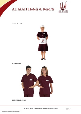 HOUSEKEEPING AL JAAH SPA TECHNIQUE STAFF AL JAAH HOTELS & RESORTS MANUEL D'UTILISATION ~ 231 ~ CET OUVRAGE EST LA PROPRIÉTÉ D'AL JAAH HOTELS & RESORTS
