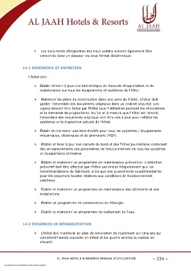 AL JAAH HOTELS & RESORTS MANUEL D'UTILISATION ~ 234 ~