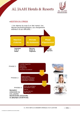 vGESTION DU STRESS Agression consciente ou non, psycho- émotionnelle sensorielle ou physique (bruit-froid) AL JAAH HOTELS & RESORTS MANUEL D'UTILISATION ~ 406 ~ CET OUVRAGE EST LA PROPRIÉTÉ D'AL JAAH HOTELS & RESORTS