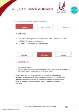 1. PRESENTATION : DIRIGER-ORGANISER-GERER AL JAAH HOTELS & RESORTS MANUEL D'UTILISATION ~ 416 ~ CET OUVRAGE EST LA PROPRIÉTÉ D'AL JAAH HOTELS & RESORTS