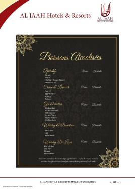 AL JAAH HOTELS & RESORTS MANUEL D'UTILISATION ~ 50 ~ CET OUVRAGE EST LA PROPRIÉTÉ D'AL JAAH HOTELS & RESORTS