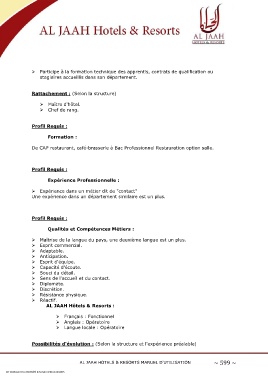 AL JAAH HOTELS & RESORTS MANUEL D'UTILISATION ~ 599 ~