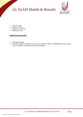 AL JAAH HOTELS & RESORTS MANUEL D'UTILISATION ~ 600 ~