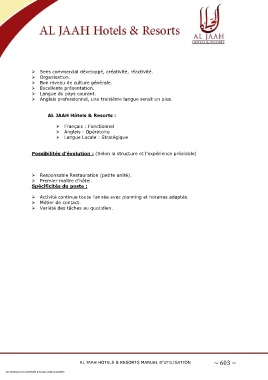 AL JAAH HOTELS & RESORTS MANUEL D'UTILISATION ~ 603 ~