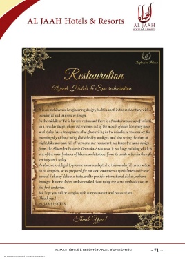 AL JAAH HOTELS & RESORTS MANUEL D'UTILISATION ~ 71 ~ CET OUVRAGE EST LA PROPRIÉTÉ D'AL JAAH HOTELS & RESORTS
