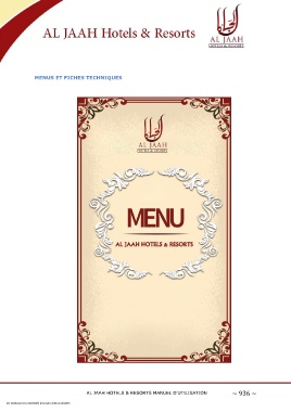 MENUS ET FICHES TECHNIQUES AL JAAH HOTELS & RESORTS MANUEL D'UTILISATION ~ 936 ~ CET OUVRAGE EST LA PROPRIÉTÉ D'AL JAAH HOTELS & RESORTS