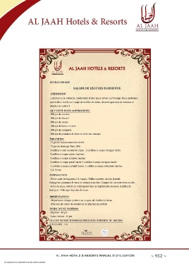 AL JAAH HOTELS & RESORTS MANUEL D'UTILISATION ~ 952 ~ CET OUVRAGE EST LA PROPRIÉTÉ D'AL JAAH HOTELS & RESORTS