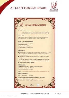AL JAAH HOTELS & RESORTS MANUEL D'UTILISATION ~ 958 ~ CET OUVRAGE EST LA PROPRIÉTÉ D'AL JAAH HOTELS & RESORTS